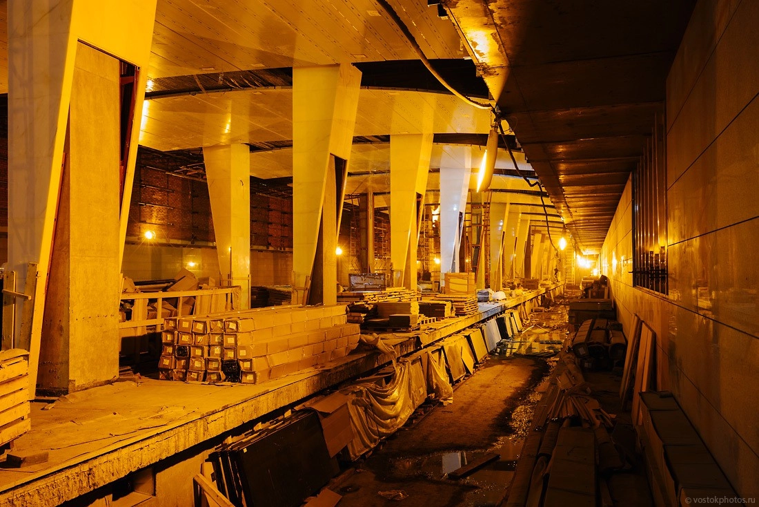 По пути мы встретили грустных телевизионщиков: «Разворачивайтесь, на станции картинки нет. Идут пуско-наладочные работы, освещение на платформе выключили. Кромешная тьма». Но у меня не видео, а только фото, да к тому же есть специальные фонарики!