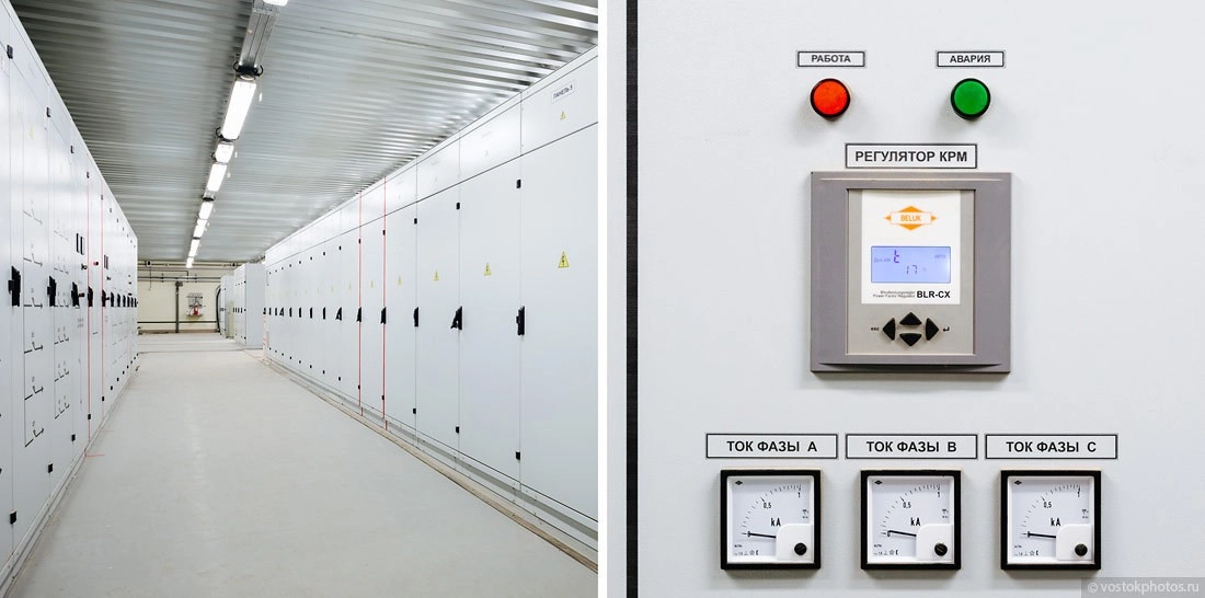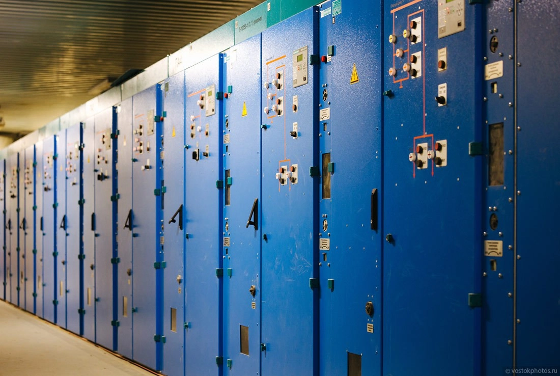 …и для понижения напряжения (отсюда и название тягово-понизительная) переменного тока до 380, 220 и 127 В, необходимого для различных служб станции (эскалаторы, освещение станции, вентиляция, насосы и так далее). Это белые шкафы.