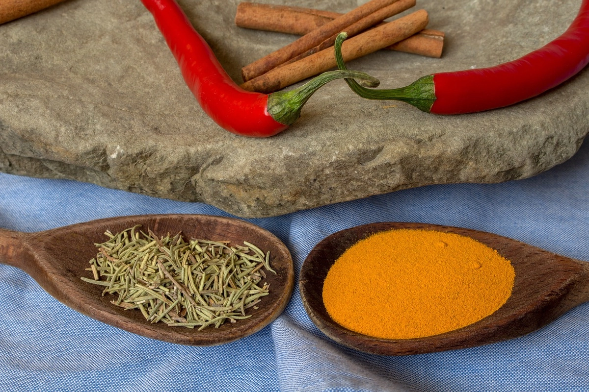 Противовоспалительными свойствами обладают: чеснок, имбирь, куркума, розмарин, острый красный перец и корица. Все эти приправы легко добавить в свой рацион, особенно тем, кто любит острое (однако при наличии гастрита или язвенной болезни с острой пищей стоит быть осторожнее). Например, с имбирем, чесноком и острым перцем можно приготовить множество блюд азиатской кухни, розмарин отлично дополняет блюда из картофеля, а корица прекрасно сочетается с кофе и сладкой выпечкой.