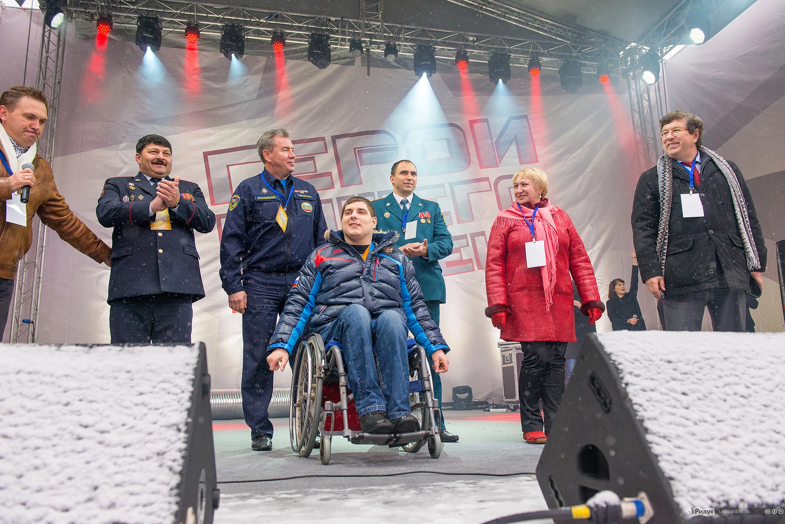 Помимо центральной сцены у памятника Марксу были установлены специальные подиумы, каждый из которых отражал определенное человеческое качество, присущее героям нашего времени: «память», «знание», «долг», «воля» и «любовь». На них перед собравшимися выступили специально приехавшие из регионов страны люди, чьими подвигами и достижениями можно гордиться. Среди них – подполковник полиции Юнус Сахратулаев, награжденный «Орденом мужества» за проявленную отвагу в боях чеченской кампании; врач Юрий Белов, спасший десятки тысяч жизней, проведя сложнейшие операции на сердце; спасатель Сергей Щетинин, принимавший участие в более чем 400 крупных спасательных операциях; Александр Козюков – спортсмен, имеющий высокие достижения, несмотря на ограниченные возможности в связи с травмой позвоночника; Людмила Черкашина – многодетная мать, воспитывающая 15 приемных детей.