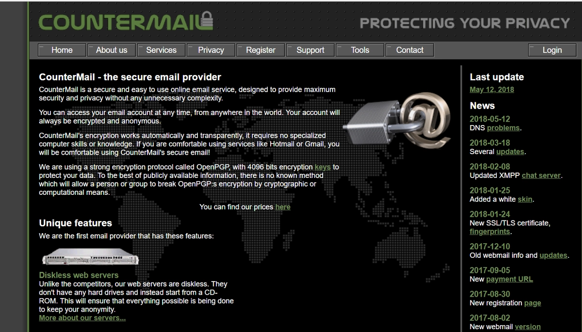 3. CounterMail. Швейцарский CoutnerMail также является известным безопасным почтовым сервисом, обеспечивающим сквозное шифрование, что делает невозможным чтение вашей электронной почты хакерами. Кроме того, CoutnerMail имеет более 4000 типов ключей шифрования.
