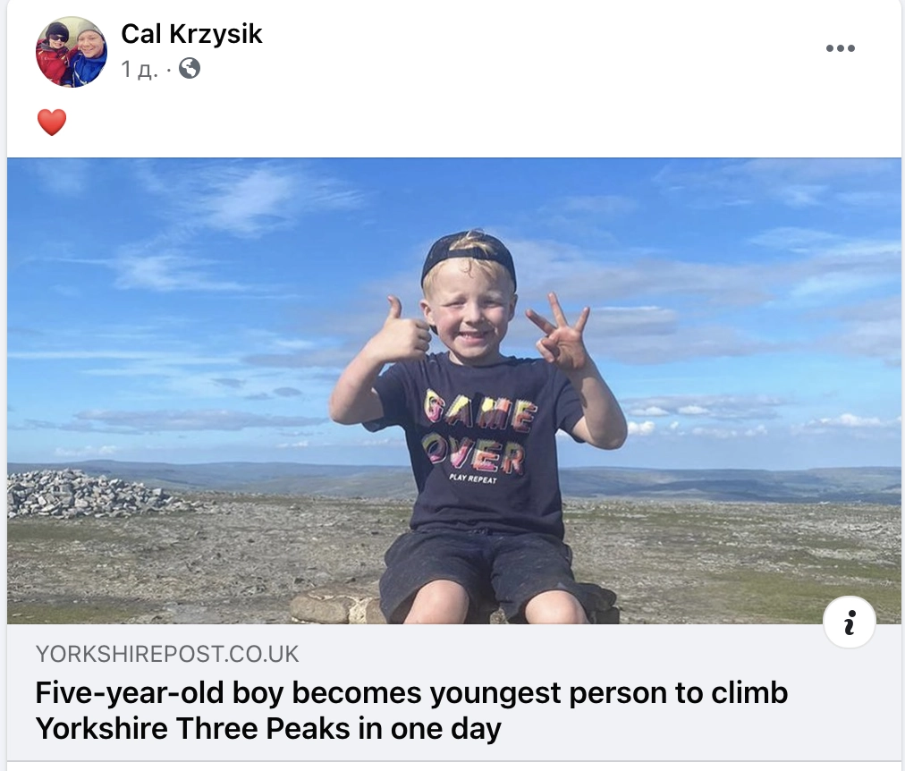 Юный скалолаз, Джексон Кшишик взобрался на три горы на Пеннинском хребте, в совокупности известные как Три пика Йоркшира. Стоит отметить, что мальчик далеко не новичок в этом деле, поэтому подъем не составил огромного труда для него.