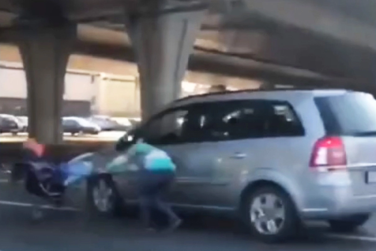 Пытавшаяся пересечь 8-полосную дорогу женщина с коляской оказалось пьяна