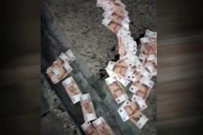 Издание опубликовало видеозапись, на кадрах которой можно увидеть, как они пытались избавиться от денег, разбросав пятитысячные купюры по проезжей части автодороги.
