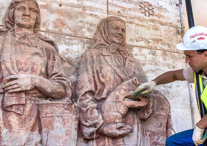 Столичные строители нашли утраченные барельефы при разборке кирпичной кладки на ВДНХ. В павильоне № 6 «Химия» они обнаружили изображения доярки и свинарки.
