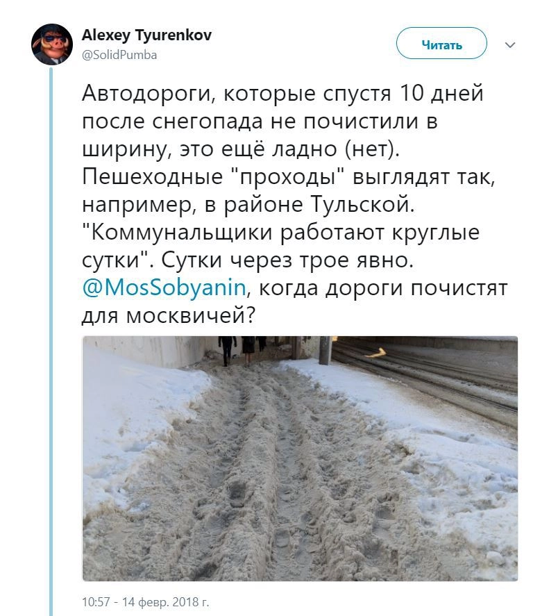 «Возвращаясь домой, я обратил внимание на то, что рабочие ГБУ „Жилищник района Печатники“ заваливают тротуары горами снега так, что пройти через них становится довольно трудно. Я решил зафиксировать этот факт, чтобы позже отправить обращение с фотографией на портал „Наш город“. Реакция рабочих на то, что я сфотографировал их творчество, оказалась крайне неадекватной», — рассказал в своем блоге волонтер портала «Наш город» Рустам Билялов.
