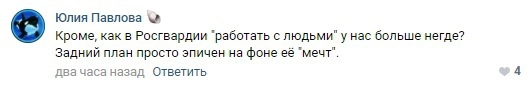 Росгвардия — это была моя детская мечта какая-то, которая осуществилась. Я здесь на службе уже более десяти лет. Каких-то определенных целей у меня, конечно, не было, но полиция — это всегда закон, порядок, правомерное отношение к людям, работа с людьми, — рассказала Кленчива.