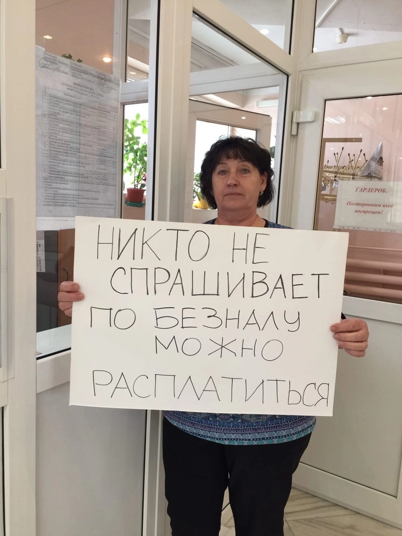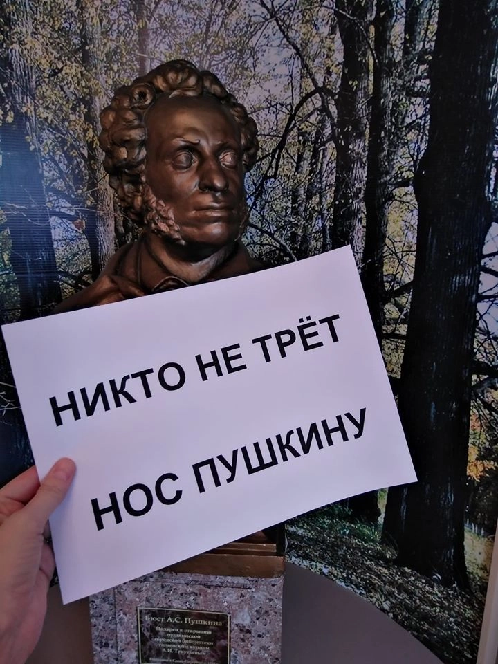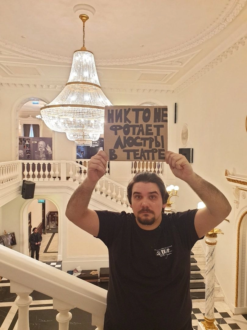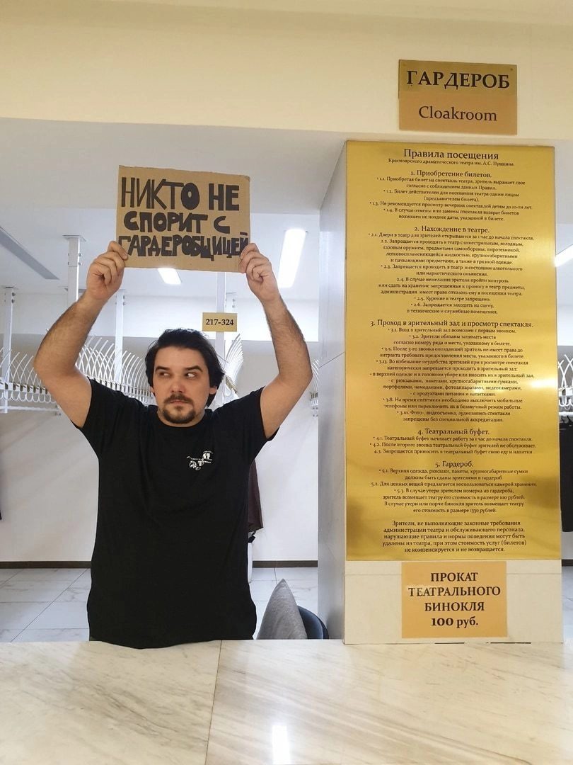 Первыми с табличками начали фотографироваться работники Красноярского драматического театра им. Пушкина