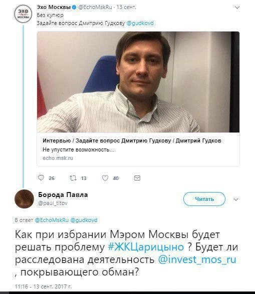 Позже выяснилось, что проблемами обманутых дольщиков не желают заниматься ни чиновники, ни депутаты, а переговоры активистов инициативной группы ЖК «Царицыно» с Москомстройинвестом закончились тем, что глава ведомства Константин Тимофеев и его заместитель Александр Гончаров предложили дольщикам искать выход из положения самостоятельно.