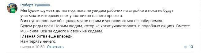 Однако, судя по настроениям членов инициативной группы, на достигнутом дольщики останавливаться не собираются. Кроме того, на смену коммунистам протест дольщиков готовится возглавить и скоординировать другая политическая сила: на растущий протест обратили внимание оппозиционеры экс-совладельца ЮКОСа Михаила Ходорковского.