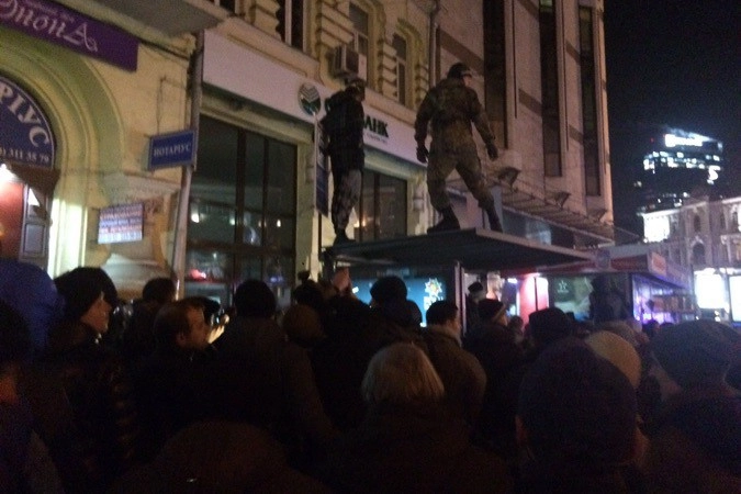 В Киеве, где в понедельник весь день продолжается противостояние митингующих с полицией, радикалы разгромили отделение Сбербанка на площади Льва Толстого. «В банке устроили настоящий погром, выбили окна на улицу, разбили окна касс и разломали дверь, даже пытались взломать банкомат», — сообщает сайт «Страна.ua».