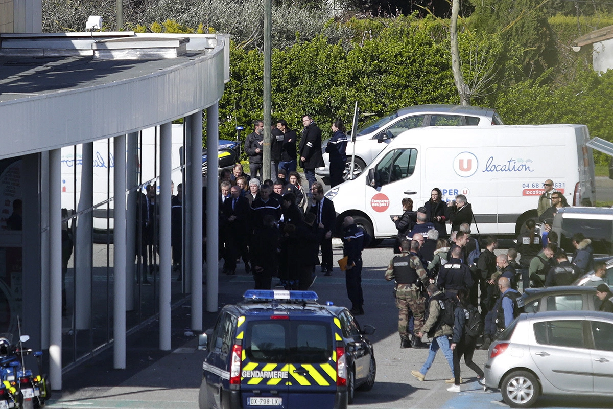 Захват заложников совершил 26-летний выходец из Марокко Редуан Лакдим, радикальный исламист, ранее уже известный французским спецслужбам. Спецназ ликвидировал его во время штурма супермаркета. Террористическая группировка «Исламское государство» (запрещена в России) взяла на себя ответственность за атаку, назвав нападавшего своим «солдатом».
