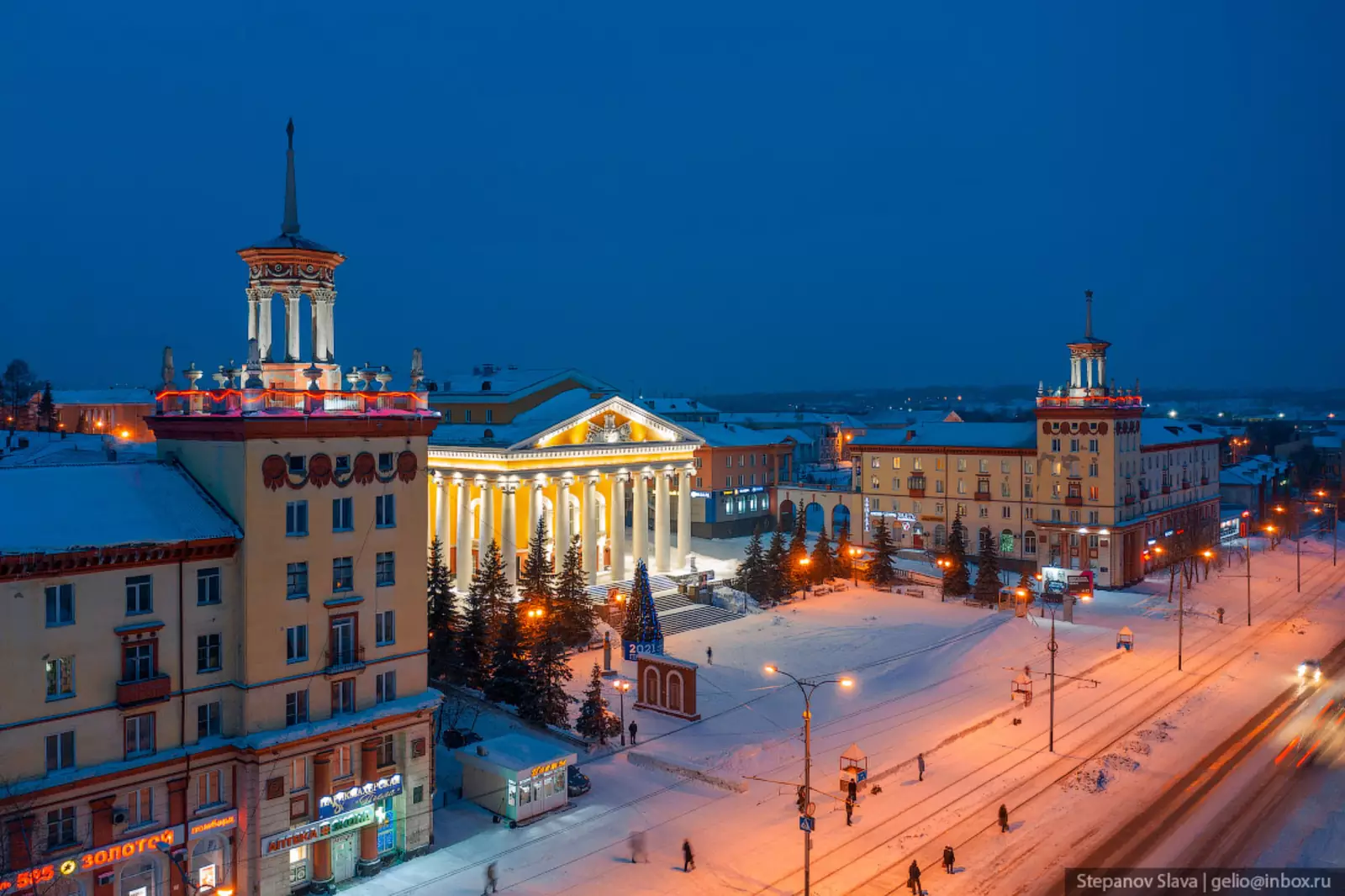 10. Центр Анжеро-Судженска — площадь Ленина. Рядом расположены администрация, университет и гимназия.