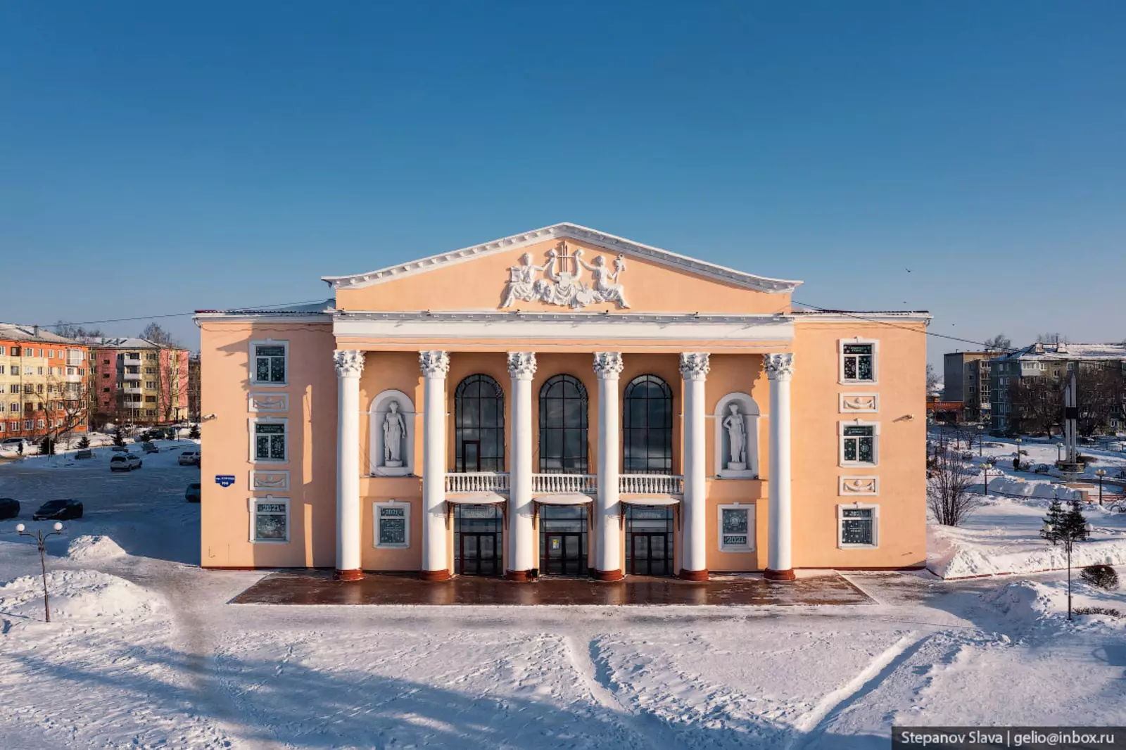 52. Первый театр в Ленинске-Кузнецком (Кольчугине) появился в 1916 году. Дворец культуры и искусства был построен в 1958 году, но в 1976 году сгорел, удалось спасти только музыкальные инструменты. Здание заново отстроили в 1988 году.