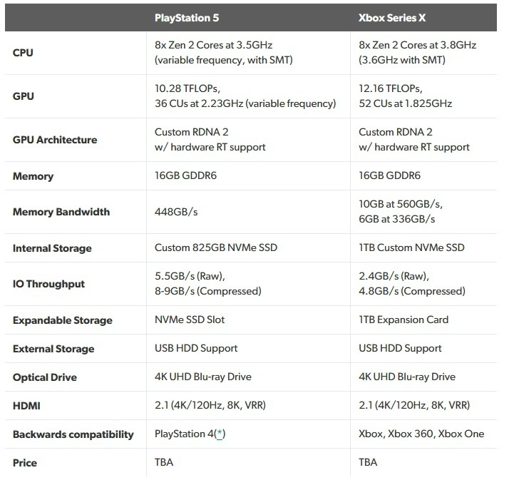 Консоль Xbox Series X будет оснащена графическим процессором 52 CU на архитектуре RDNA 2 с постоянной частотой 1,825 ГГц, в то время как её конкурент Sony выбрала что-то чуть менее колоссальное: 36 CU, но работать PlayStation 5 будет на несколько более высоких частотах — до 2,23 ГГц.
