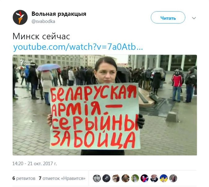 Белорусские оппозиционеры устроили на Октябрьской площади в Минске акцию протеста «Марш рассерженных белорусов 2.0» с лозунгами за отставку высшего руководства страны. Поводом для выступления стало убийство солдата-срочника Александра Коржича в воинской части в борисовских Печах. Молодого человека нашли повешенным со связанными ногами, на его теле были обнаружены многочисленные гематомы.