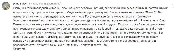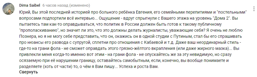 Немало критики прозвучало в адрес популярного блогера. Интернет-пользователи заподозрили его в личной неприязни к собеседнику и заказном материале.