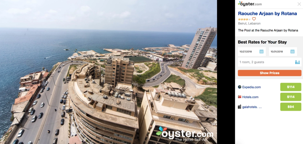 К примеру, популярный онлайн-гид по отелям Oyster.com опубликовал аналогичный снимок, сделанный из окна отеля Raouche Arjaan by Rotana, расположенного в деловом районе Бейрута: