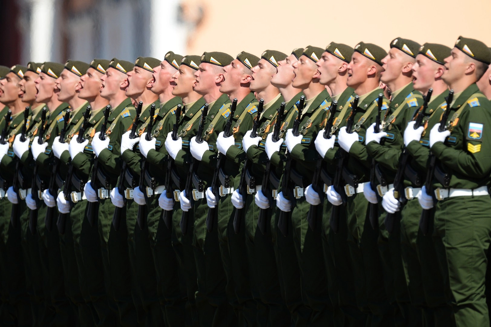 Сводный расчет женщин-военнослужащих Военного университета МО РФ и Вольского филиала Академии материально-технического обеспечения, знаменная группа военнослужащих батальона Почетного караула 154-го отдельного комендантского Преображенского полка, расчет Нахимовского Военно-морского училища и Кронштадского морского кадетского корпуса, полк сухопутных войск ВС России, полки Воздушно-космических сил и Военно-морского флота России, морские пехотинцы 336-й отдельной гвардейской белостокской бригады Балтийского флота — участников парадного строя можно перечислять бесконечно.