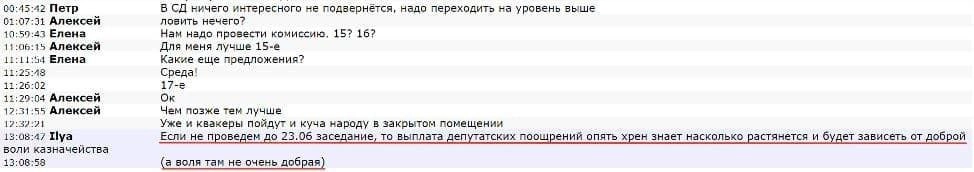 В следующем скриншоте зафиксированы отчаянные попытки Яшина организовать срочное заседание совета депутатов, чтобы получить поскорее депутатское поощрение.