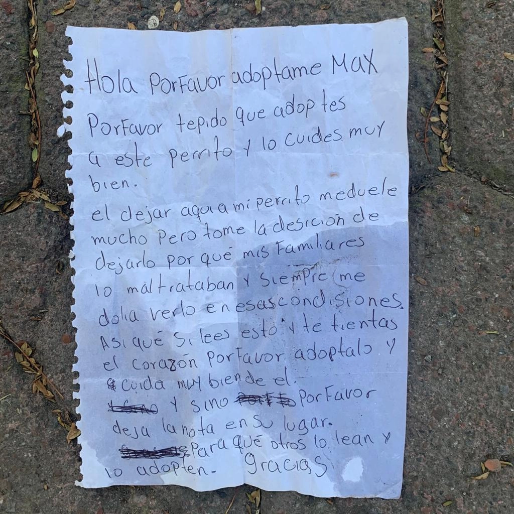 Пожалуйста, возьмите эту собаку к себе домой и позаботьтесь о ней. Оставлять ее здесь очень больно. Но мне пришлось принять это решение, потому что мои родственники плохо с ней обращаются. Мне было страшно видеть собаку в такой ситуации. Так что, если вы прочитали это письмо, и оно тронуло вас, пожалуйста, возьмите собаку себе. Если нет, оставьте письмо здесь, чтобы другой человек тоже смог его прочитать. Спасибо, — написал ребенок.