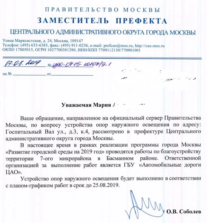 Я получила ответ от зампрефекта, что освещение будут восстанавливать до 25 августа, — рассказала Мария.