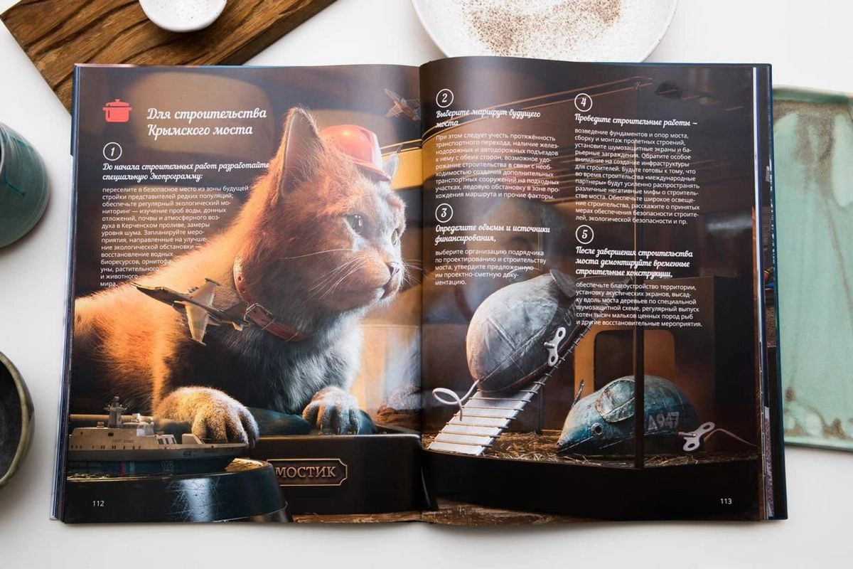 «Каждый раз, листая страницы, вы будете находить новые смыслы и шифры, вложенные в текст и графику. В результате у нас получилась книга о вкусной и здоровой политике», — говорит автор.