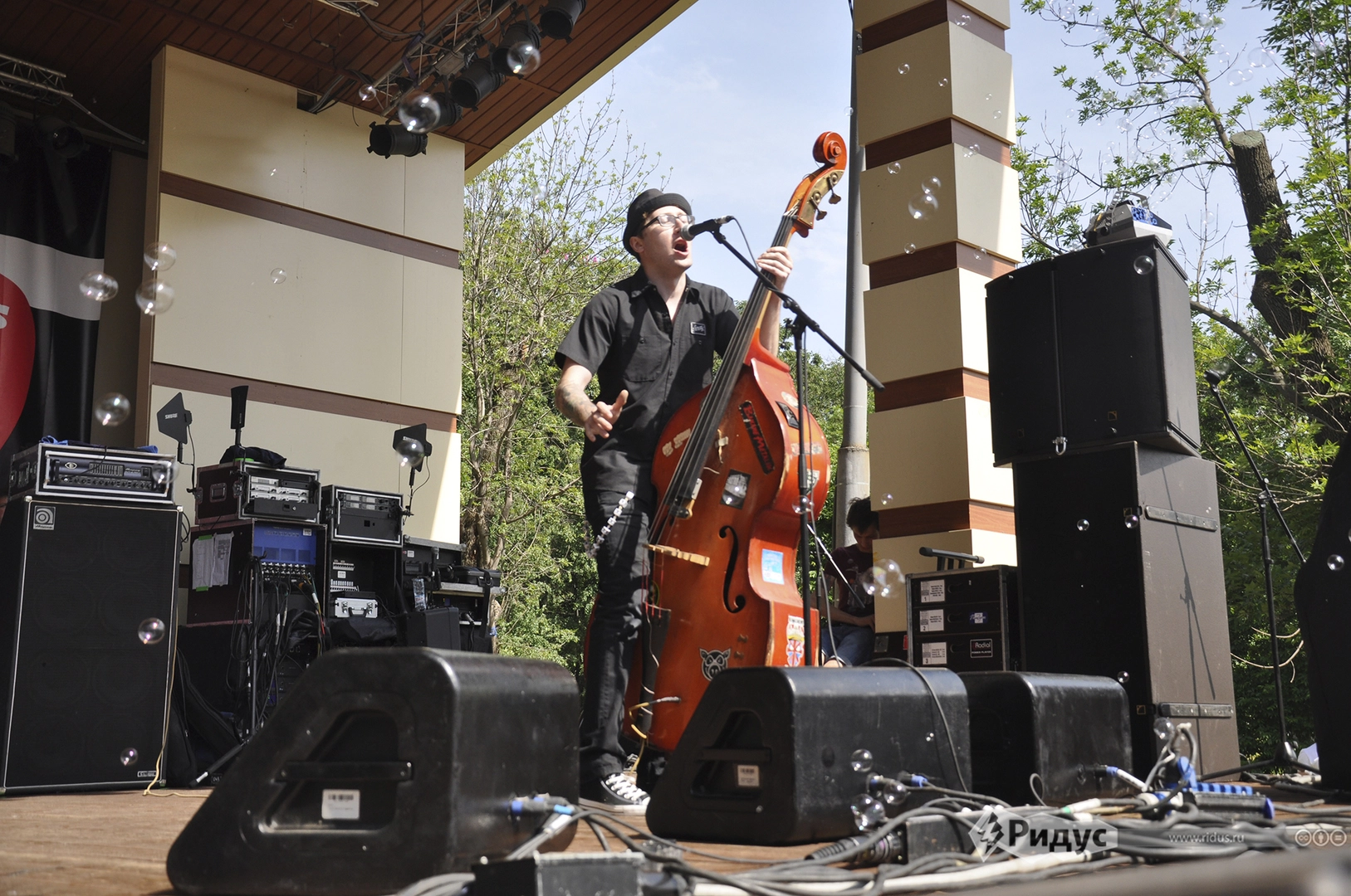 На «Kids Rock Fest» позаботились и о взрослых: они крепко держат разноцветную карту Красноспресненского парка и за «активностями» своих деток наблюдают преспокойно. В этих джунглях полный порядок, потому что насыщенная тематическая программа детское внимание не отпускает: рок-чтения с Noize MC у книжного автобуса «Бампер», который обычно колесит по стране, а сегодня вот заехал к рокерам на огонек. Музей музыкальных носителей и светотехники. Мастер-классы по игре на гитаре, барабанах и вокалу. Мастерская рок-одежды, тату-салон и даже уроки английского, батут, мороженое, машинки и прыгающие ходули джолли-джамперы. Фест открытый и бесплатный, он собрал не только отдыхающих, но и желающих показать себя. С нестандартным — непищевым — выступлением сюда приехал «Театр вкуса», чтобы дать импровизационное уличное шоу. «Kids Rock Fest» в Москве первый.