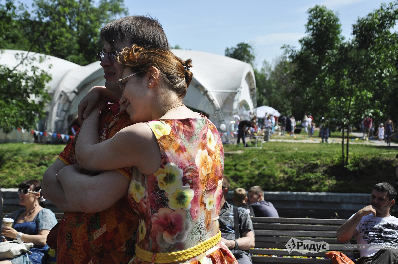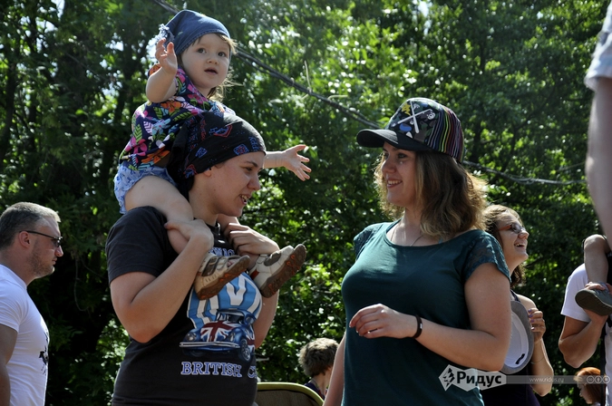 В черной пачке и с картой организатора на шее по парку туда-сюда летает Женя Лазарева по прозвищу «Mamanonstop». Так называется и её компания. «У нас есть клуб инициативных родителей — мамы, которые бросили свои крупные корпорации и пошли дарить свой талант семьям. Каждый проект, который здесь представлен, создан какой-нибудь мамой», — это, запыхавшись, на бегу рассказывает Женя, а люди ходят и видят сцену с известными музыкантами, рок-н-ролльный салон красоты и разрисованных детей с ирокезами, Harley-шоу, фотозону Rock Family Look, поющую кухню для пап, магазины товаров ручной работы и много шариков.
