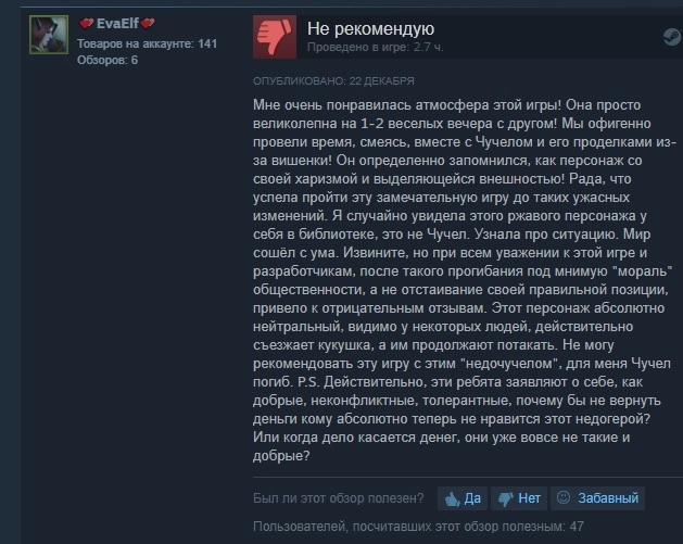 К чему приведет эта история в контексте всего игрового сообщества — пока неясно. Однако грустным фактом является то, что неплохая и самобытная игра в итоге получила обвал рейтинга. В текущий момент количество отрицательных отзывов с призывами вернуть деньги продолжает расти.