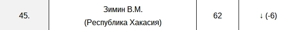 При этом составители рейтинга отмечают, что в случае с главой Республики Хакасия применение понижающего коэффициента связано с утверждением прокуратурой Хакасии обвинительного заключения по уголовному делу в отношении бывшего зама Зимина — министра сельского хозяйства и продовольствия Ивана Вагнера, который обвиняется в злоупотреблении должностными полномочиями и незаконном участии в предпринимательской деятельности.