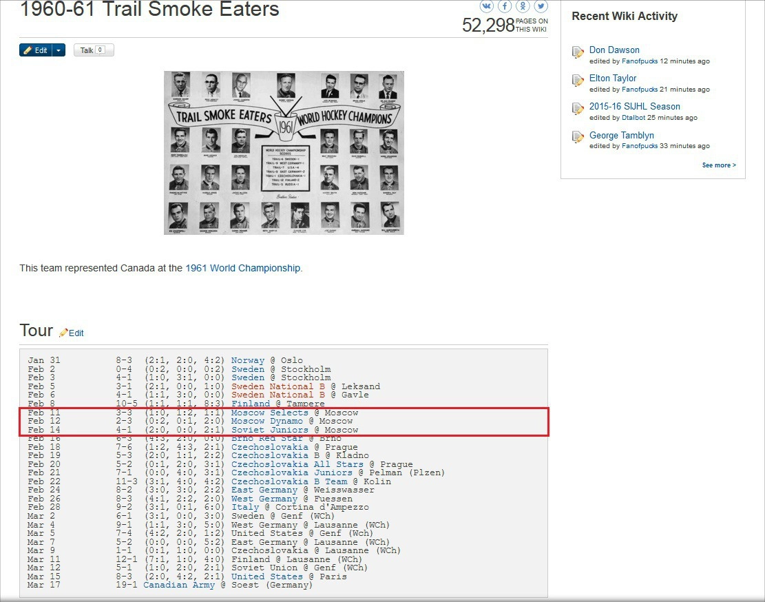 За три года до игры в Калинине, в 1963 году, шесть матчей в Москве проиграли «Виндзор Булдогс».
