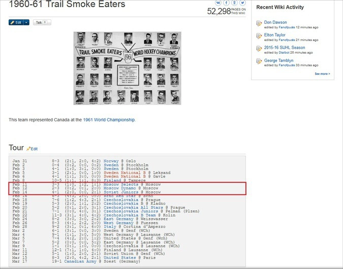Стоит отметить, что игра с «Бобрами из Шербрука» не была первым противостоянием с канадцами на территории СССР. Еще за 8 лет до калининского (это название носила Тверь с 1932 по 1990 год, прим. «Ридус») «ледового побоища», в 1958 году, в «Лужниках» столичные динамовцы принимали финалистов кубка Аллана «Келовна Пэкерс».