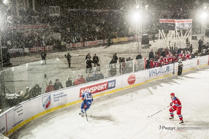 К сожалению, были и минусы. Главный из них — это обзор. «Русская классика 2016» была рассчитана только на телезрителей. С трибун игры было не видно от слова совсем. Расстояние от зрительских мест до коробки составило около тридцати метров. Корреспонденты «Ридуса» специально залезли на «сектор», чтобы убедиться: шайбу можно было разглядеть лишь на экране, стоящем за воротами. «Живьем» можно было только заметить, в какую сторону двигаются хоккеисты. Помимо большого расстояния наслаждаться матчем зрителям мешали телевизионные вышки, возвышающиеся над полем.