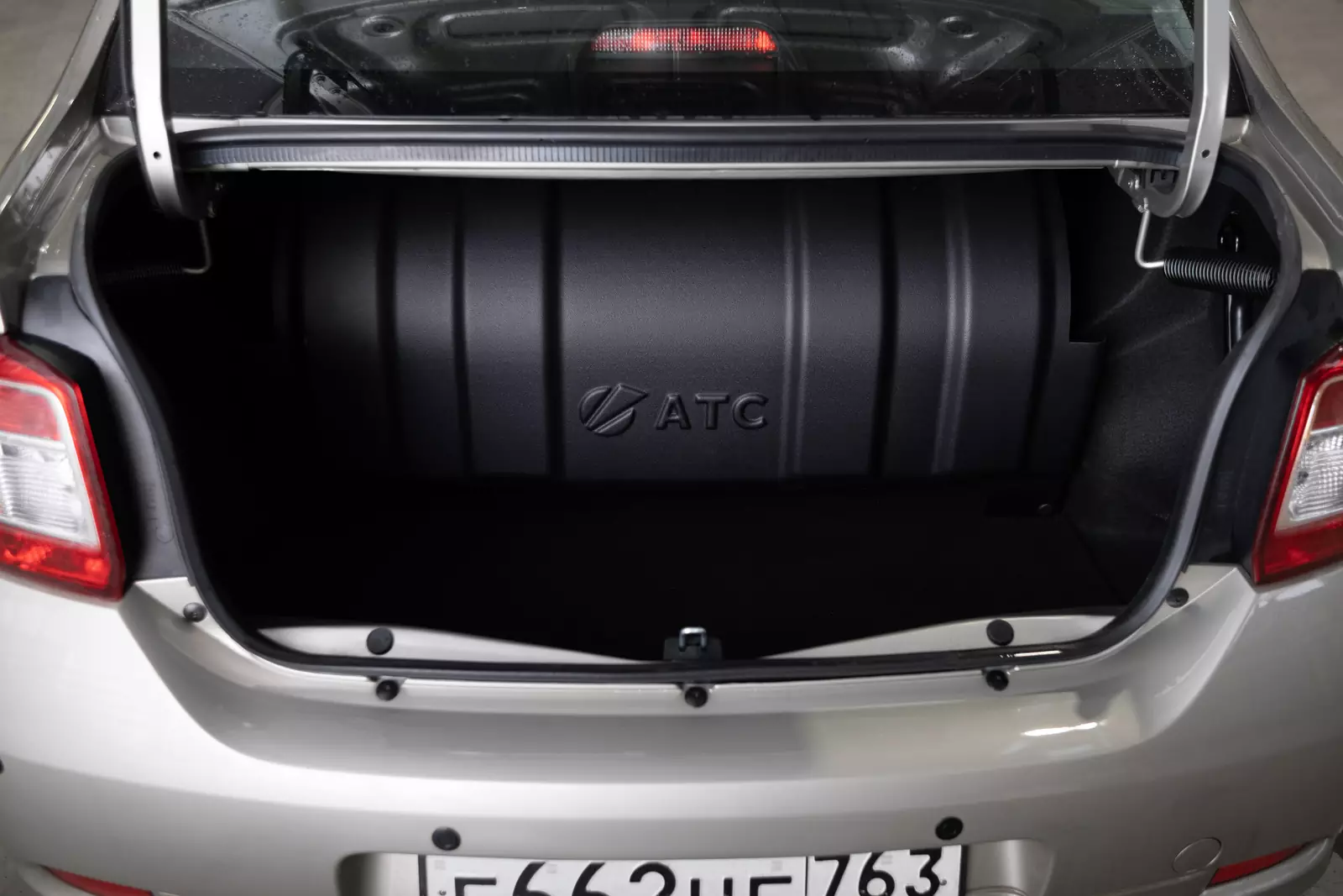Для заправки метаном в багажник установлен баллон емкостью 90 литров. Штатный 50-литровый бензобак остается на месте. При заправке сразу двумя видами топлива на Logan CNG можно проехать до 1000 километров.