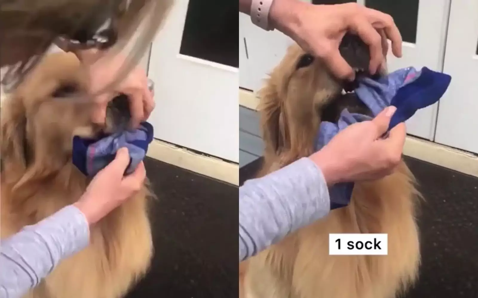 Ретривер собрал в пасти коллекцию носков и заставил соцсети хохотать