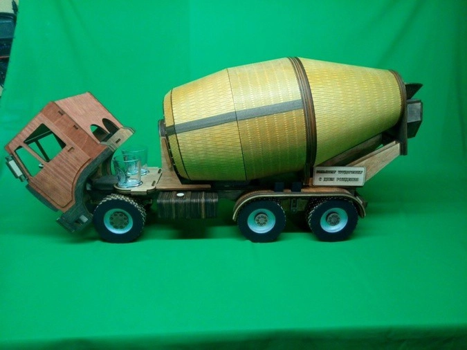 Резчик из Нижнего Новгорода по имени Александр Петрович производит оригинальные сувениры, взяв за основу автомобиль КАМАЗ. Об этом сообщает электронная газета «Вести КАМАЗа». Александр вырезает самосвалы из разных видов дерева, фанеры и шпона. Кузов грузовика служит емкостью для подарочного алкоголя, а в кабине грузовика, по задумке автора, размещаются стопки. Сувенир ручной работы пользуется популярностью: мастер просит за свою работу 5000 рублей.