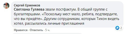 Ерженков рассказал, что его якобы неуважительным образом пригласили на «день дождения» — «в общей группе с бухгалтершами», дав тем самым понять, что не будут ему рады на корпоративном празднике. Ксения Собчак, с которой режиссер «Дождя» давно сотрудничает, добавила, что ее и вовсе не приглашали на торжество оппозиционного телеканала.