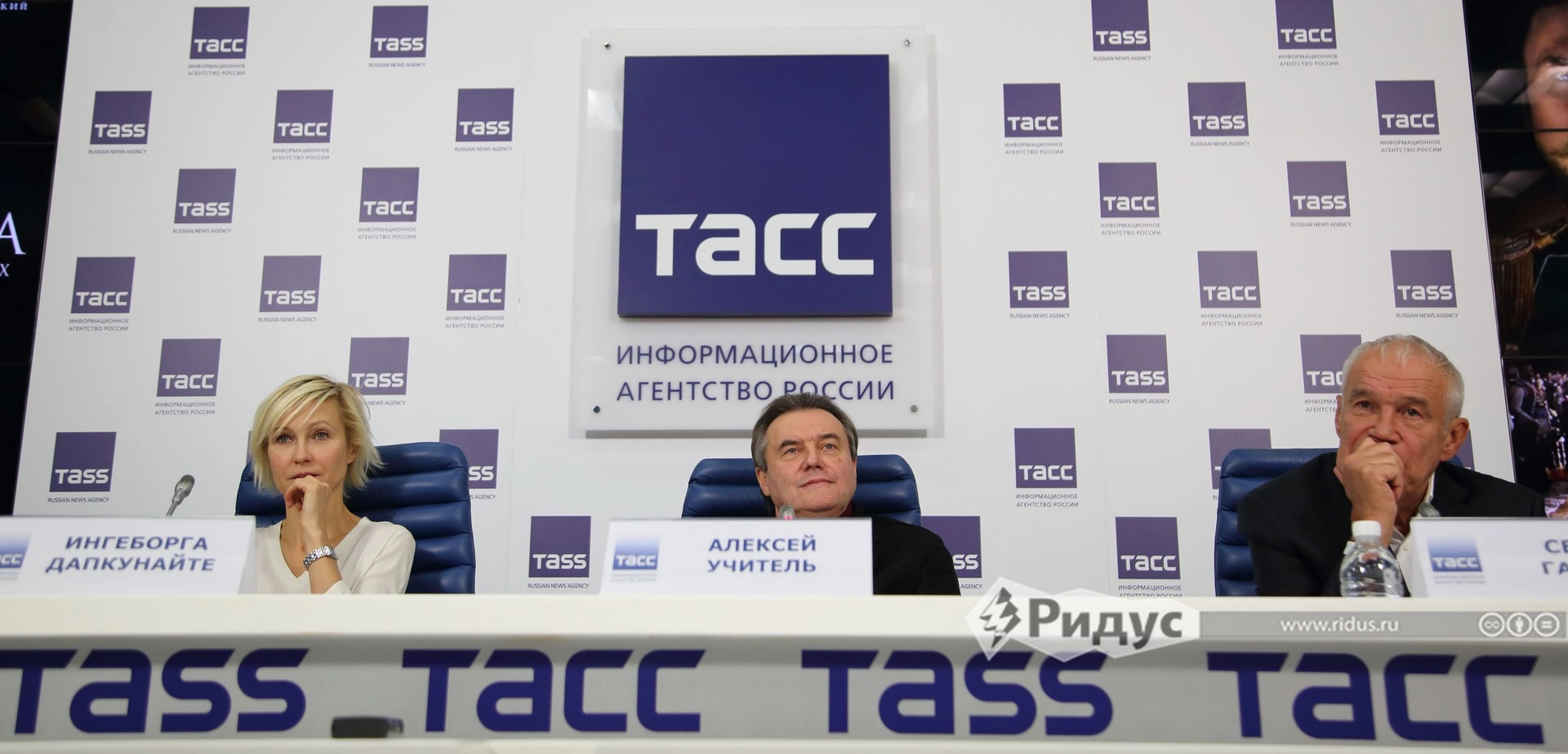 Актриса Ингеборга Дапкунайте, режиссёр Алексей Учитель и актёр Сергей Гармаш на московской пресс-конференции по фильму «Матильда»