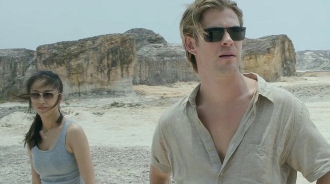 Режиссёр пытается выйти из положения, максимально сокращая как специфическую терминологию, так и время, проведённое персонажем за ноутбуком — по сути, за весь фильм у «кибера» наберётся всего пара ярких выходов по профессии. Получается немного глупо: мы скорее догадываемся, что Николас крут в своём деле, нежели имеем этому реальное подтверждение. Ближе к финалу и вовсе смешно: «Обойдёмся без высоких технологий», — решает герой, сводя свой дальнейший план к череде привычных для любого боевика действий: летим и вламываемся.