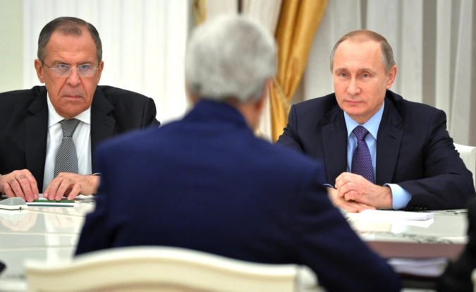В Кремле завершилась встреча президента РФ Владимира Путина с главой российского МИД РФ Сергеем Лавровым и госсекретарем США Джоном Керри. Она продолжалась более трех часов.