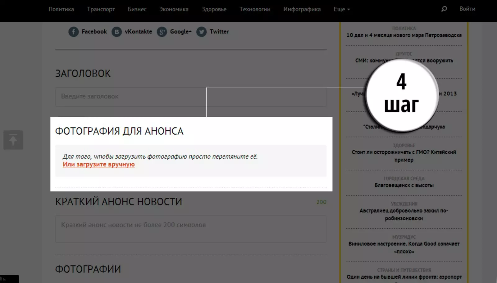 Шаг 4. Теперь Вы можете добавить фотографию в анонс новости.