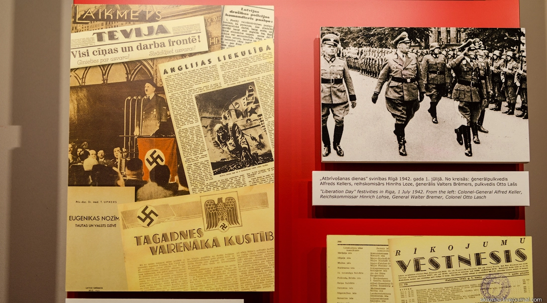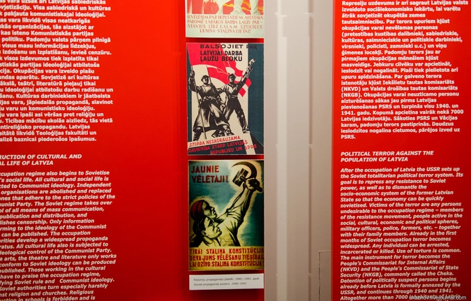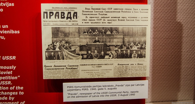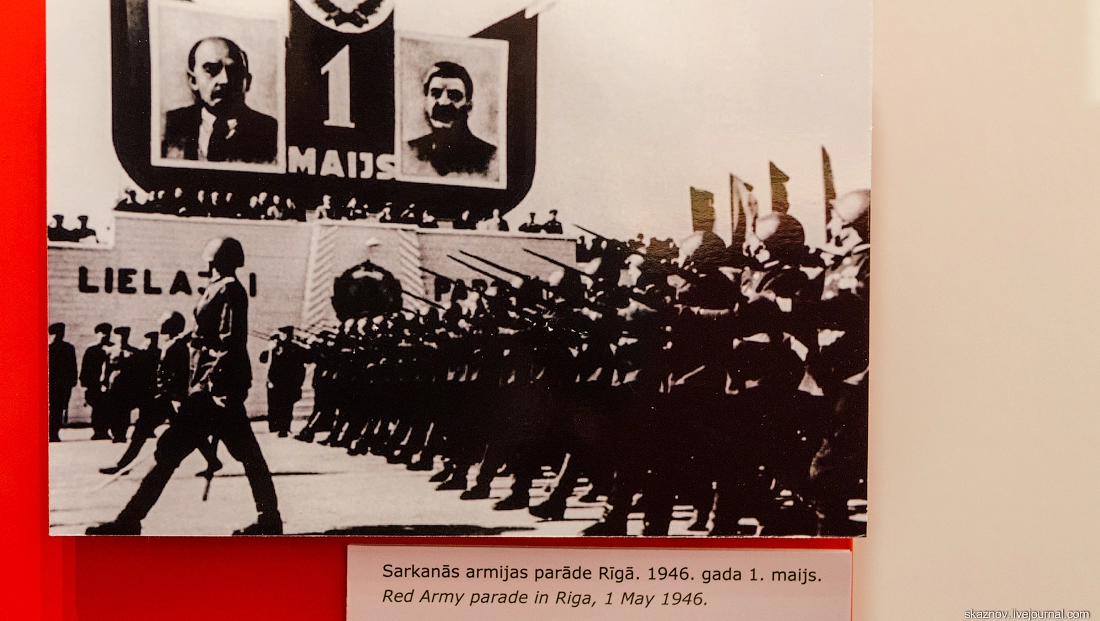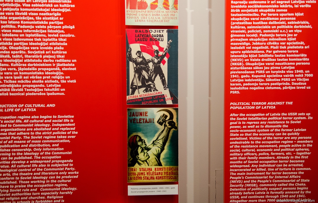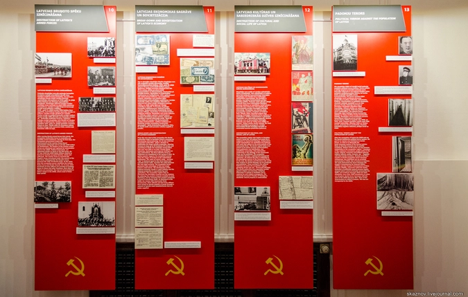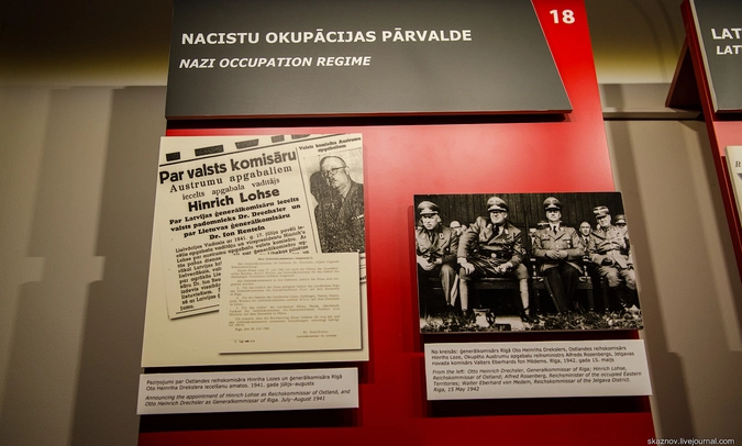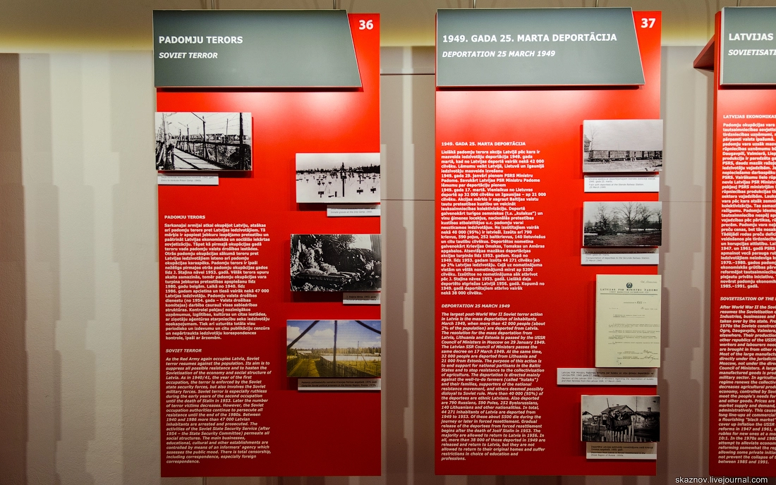 Данный период подразделяется создателями экспозиции на три этапа, которые имеют следующие названия: «первый год советской оккупации (1940—1941)», «оккупация нацистской Германией (1941—1944)» (специальный отдел посвящён Холокосту на территории Латвии) и «послевоенная советская оккупация (1944—1991)». Основное здание музея сейчас на реконструкции, поэтому экспозиция переехала временно в здание недалеко от монумента Свободы. Я бы рекомендовал посетить обязательно при посещении Риги... Интересные материалы, интересная история, которую уже не вырежешь...