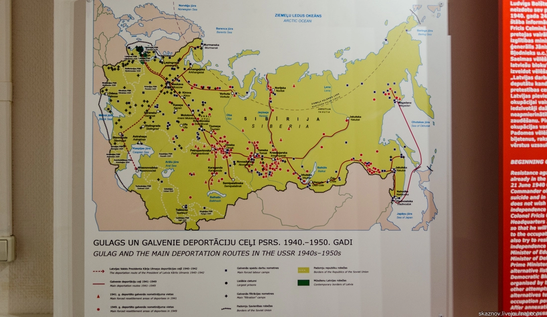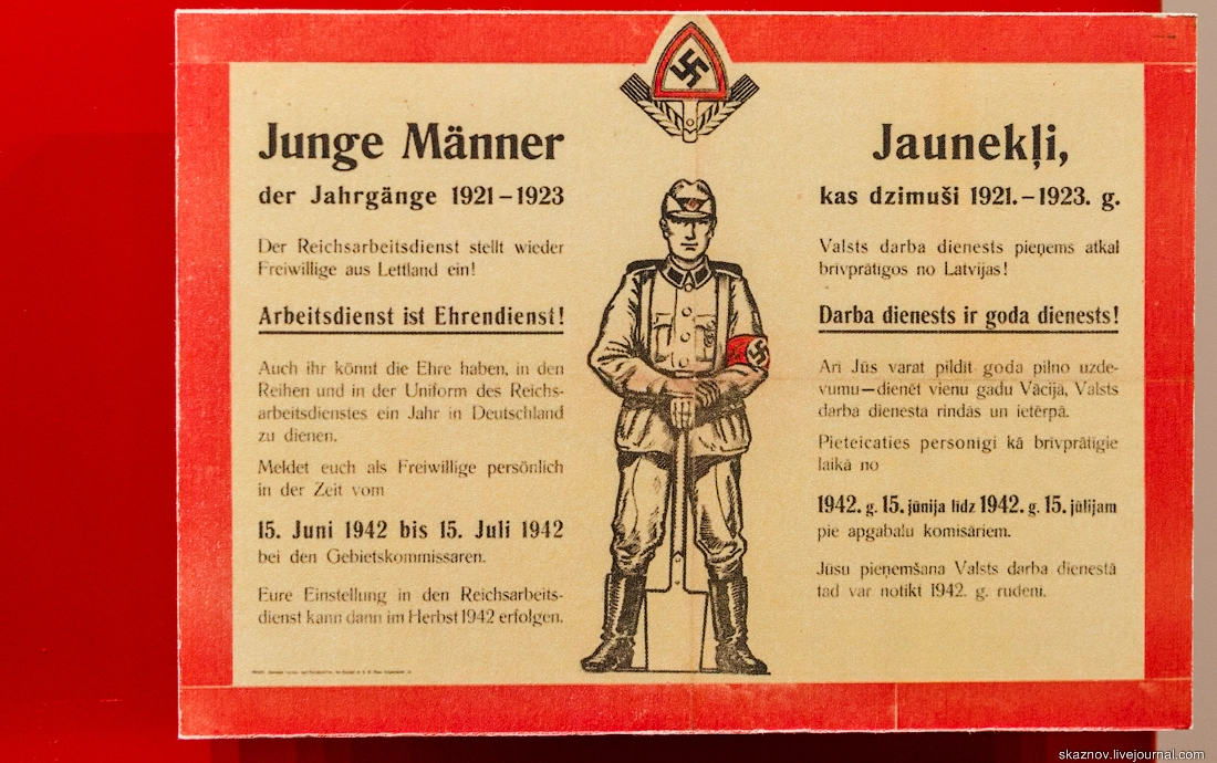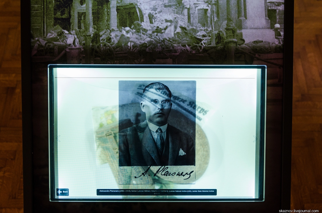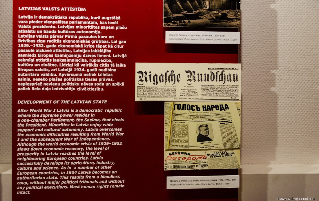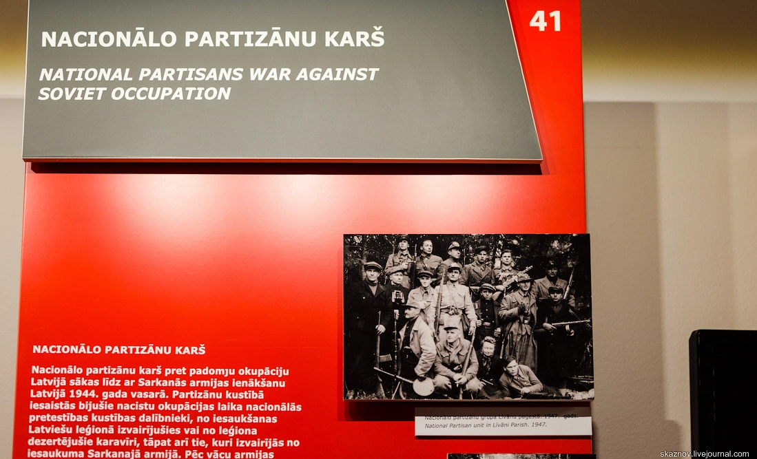 Данный период подразделяется создателями экспозиции на три этапа, которые имеют следующие названия: «первый год советской оккупации (1940—1941)», «оккупация нацистской Германией (1941—1944)» (специальный отдел посвящён Холокосту на территории Латвии) и «послевоенная советская оккупация (1944—1991)». Основное здание музея сейчас на реконструкции, поэтому экспозиция переехала временно в здание недалеко от монумента Свободы. Я бы рекомендовал посетить обязательно при посещении Риги... Интересные материалы, интересная история, которую уже не вырежешь...