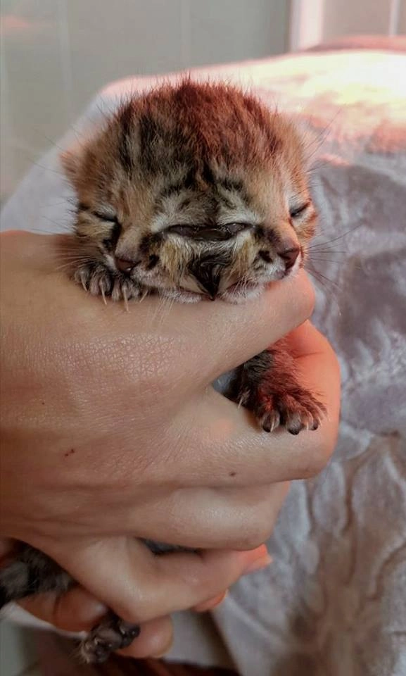 На 12-й день жизни он поправился до 227 граммов и у него открылись два нормальных глаза, сообщается в комментарии к фотографии, опубликованной в Facebook.
