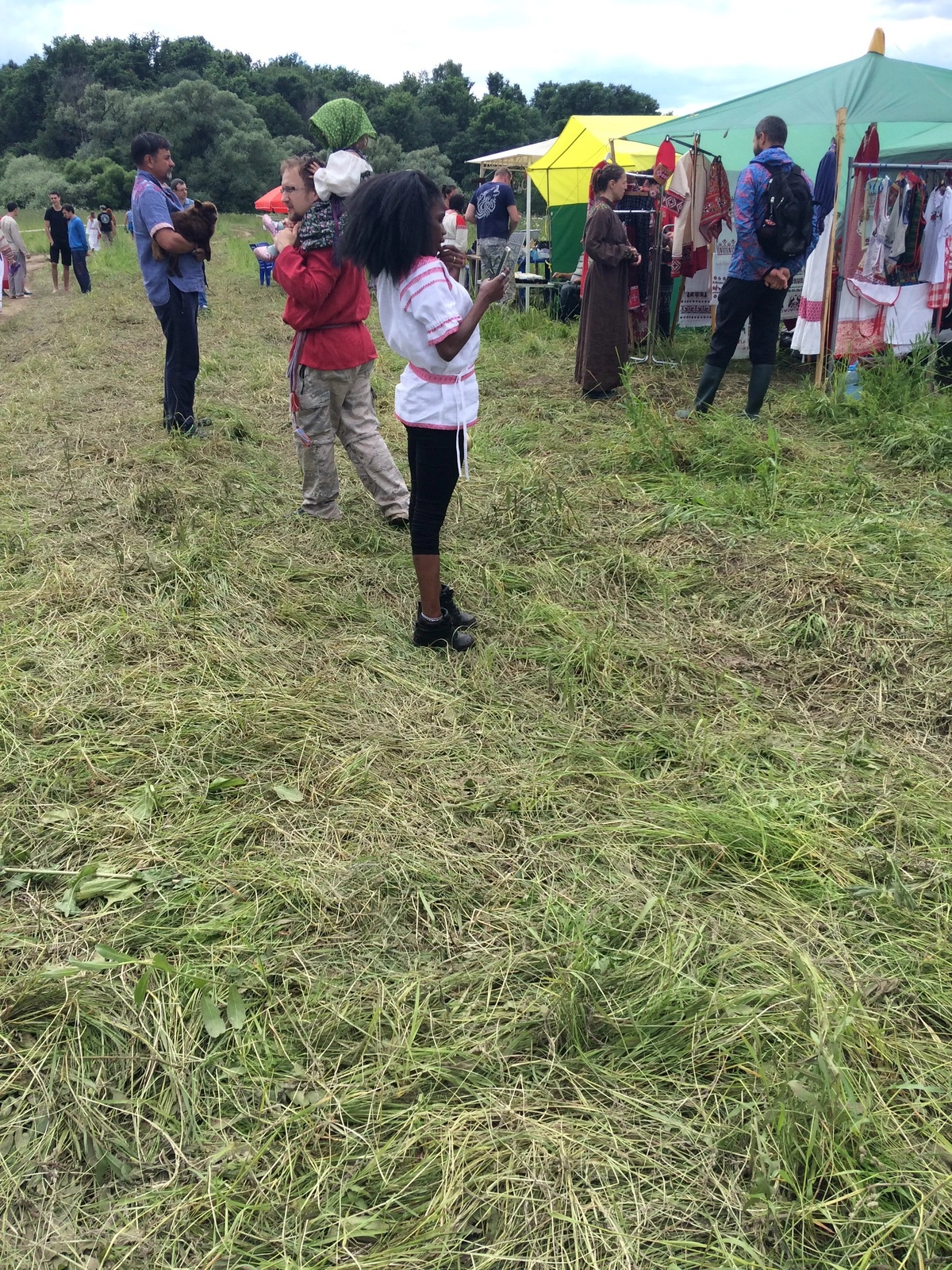 Дойдя до крутого спуска, уже была видна река и происходящее там действо. Но на пути моем и еще нескольких людей, оказавшихся рядом, встала непреодолимая преграда — родная русская грязь, через которую не пройти, не проехать. Долго ломали голову, как бы пройти этот участок с наименьшими «имиджевыми» потерями, но в итоге пришлось убить всю свою обувь, утопая в грязи, и выйти, наконец, на поляну.