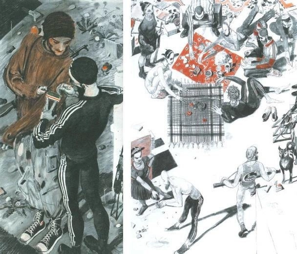 Каллима разрабатывает многосерийное повествование сродни эпосу, героями которого являются боевики-горцы, узнаваемые по таким атрибутам, как бороды, кроссовки и костюмы Adidas. Изображены они в романтизированной манере, — гласит кураторское пояснение организаторов выставки, которое приводит Telegram-канал Cultras.