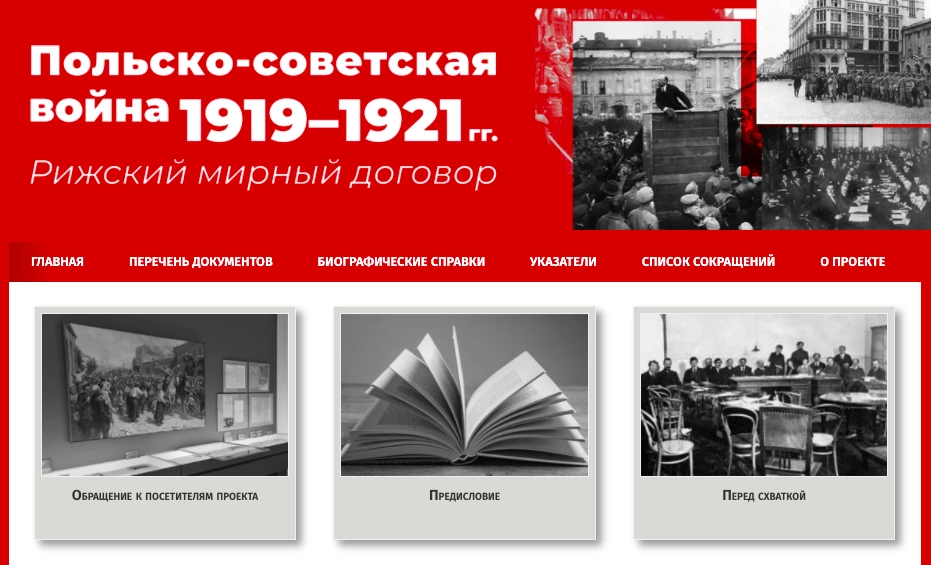 Федеральное архивное агентство совместно с Российским историческим обществом и РГАСПИ открыли историко-документальную выставку «Польско-советская война 1919−1921 гг. Рижский мирный договор». Она будет открыта для посещений с 17 марта по 25 апреля текущего года.