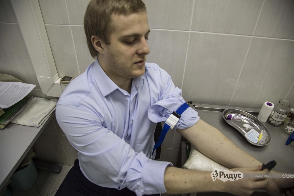 В среду, 20 февраля, стартовал следующий этап — собственно забор крови. Медицинский кабинет в центральном офисе госкорпорации на Большой Ордынке распахнул двери для желающих вступить в ряды потенциальных доноров.
