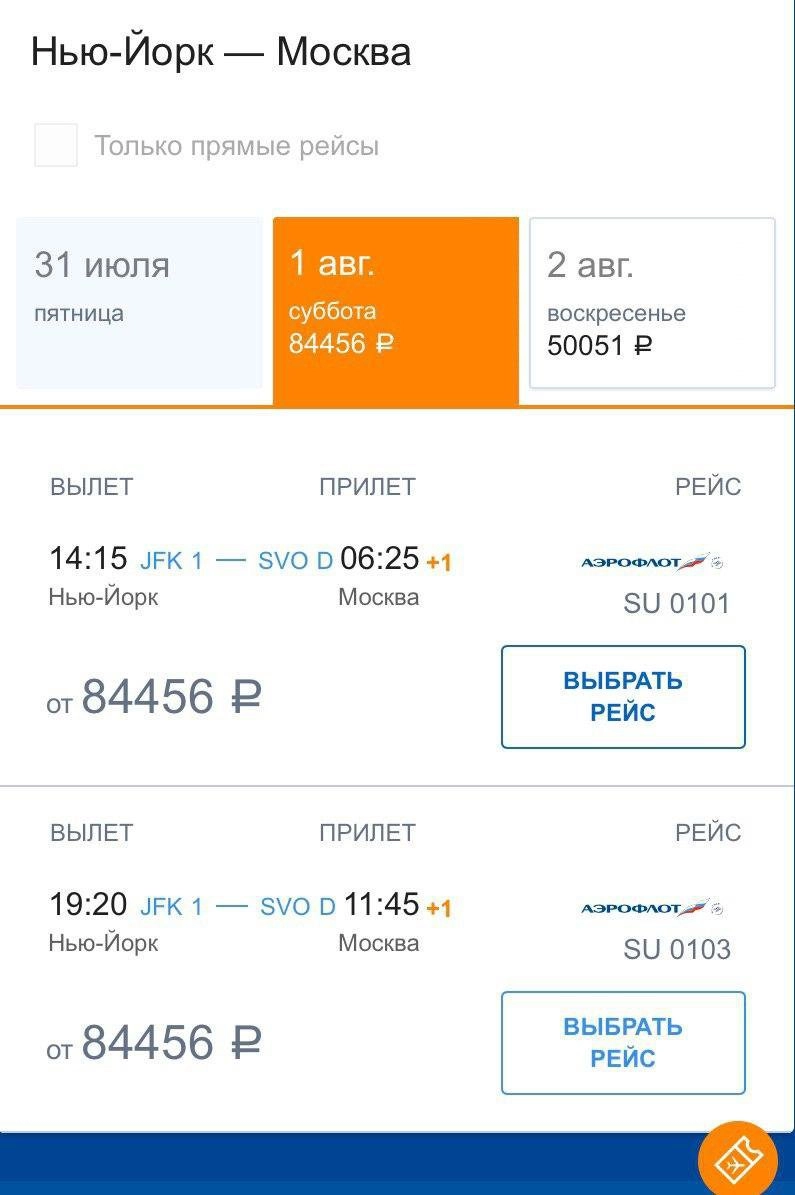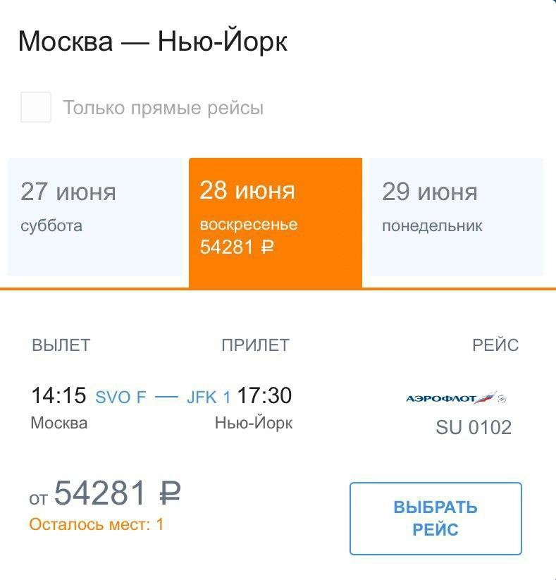 Среди полуподпольных направлений «Аэрофлота», доступных пассажирам со средствами, — Лондон, Париж, Нью-Йорк, Сеул, Ницца, Рим, Тель-Авив, Барселона и Франкфурт-на-Майне. Российский перевозчик совершает полеты по времени, установленному до пандемии, и под номерами регулярных рейсов. Продажа билетов начинается менее чем за неделю.